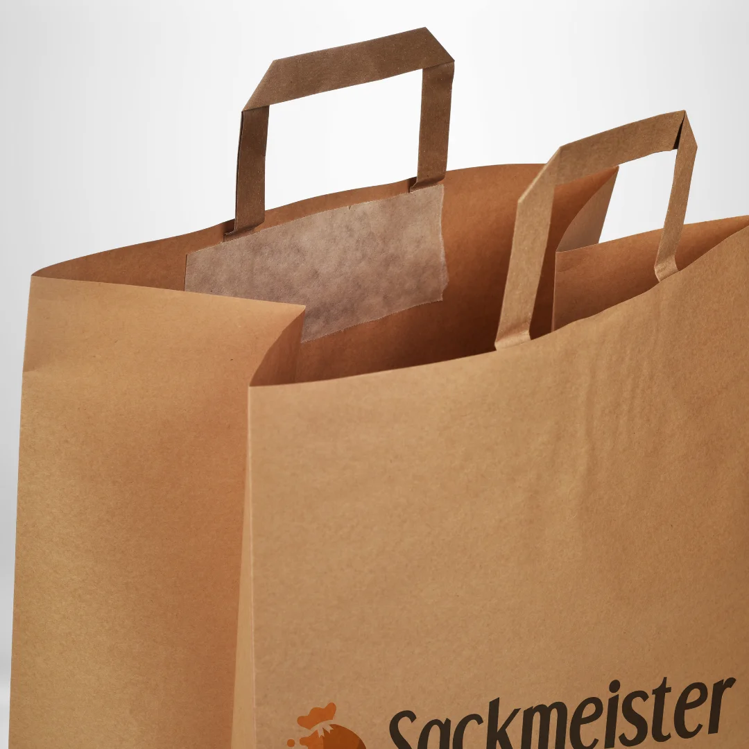 Flachhenkel Papiertragetaschen sind die wirtschaftliche und nachhaltige Lösung für den täglichen Einsatz im Einzelhandel. Durch die flachen, innen verklebten Papierhenkel bieten sie hohen Tragekomfort und zuverlässige Stabilität bei gleichzeitig reduziertem Materialeinsatz.