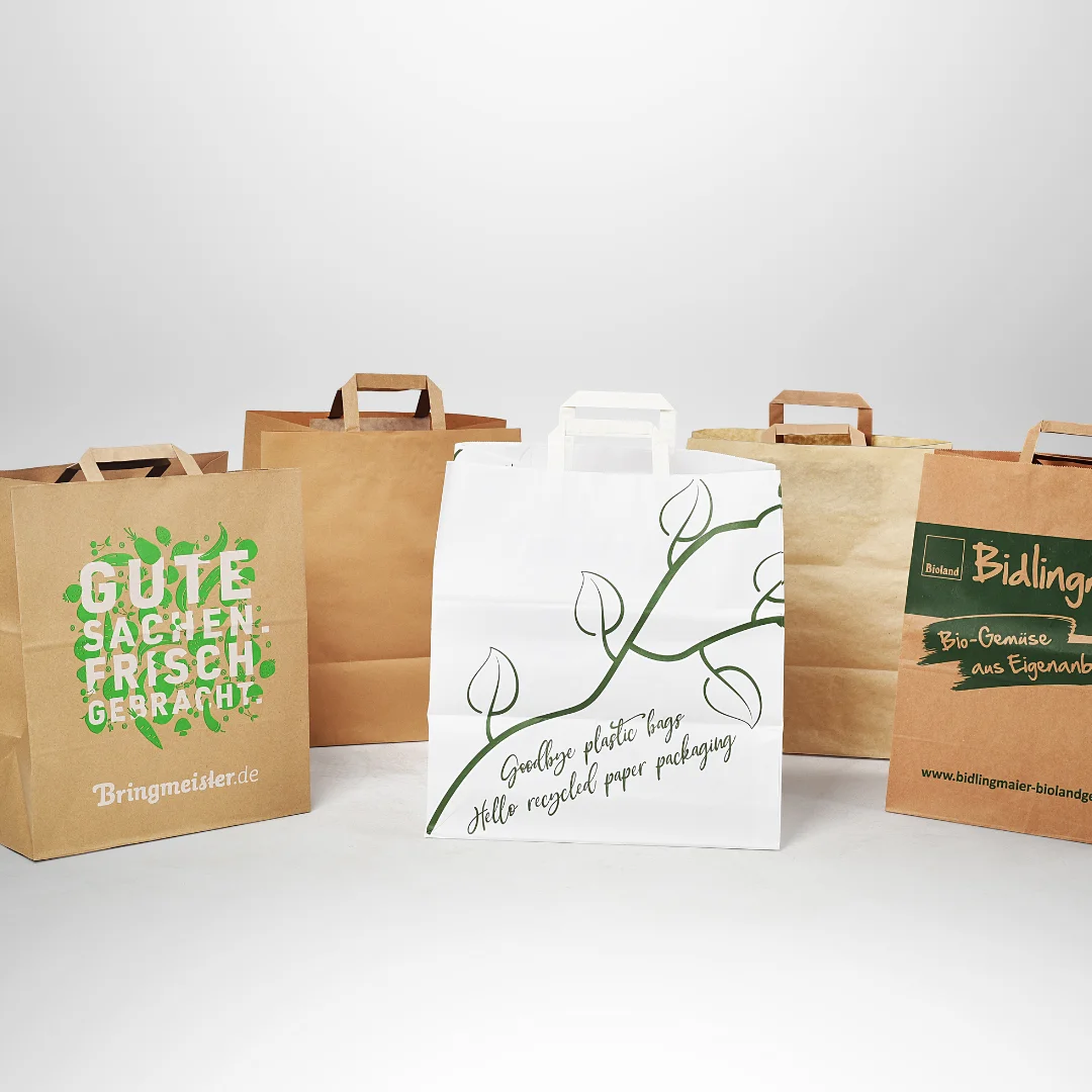 Gefertigt aus Kraft- oder Recyclingpapier eignen sich diese Tragetaschen ideal für große