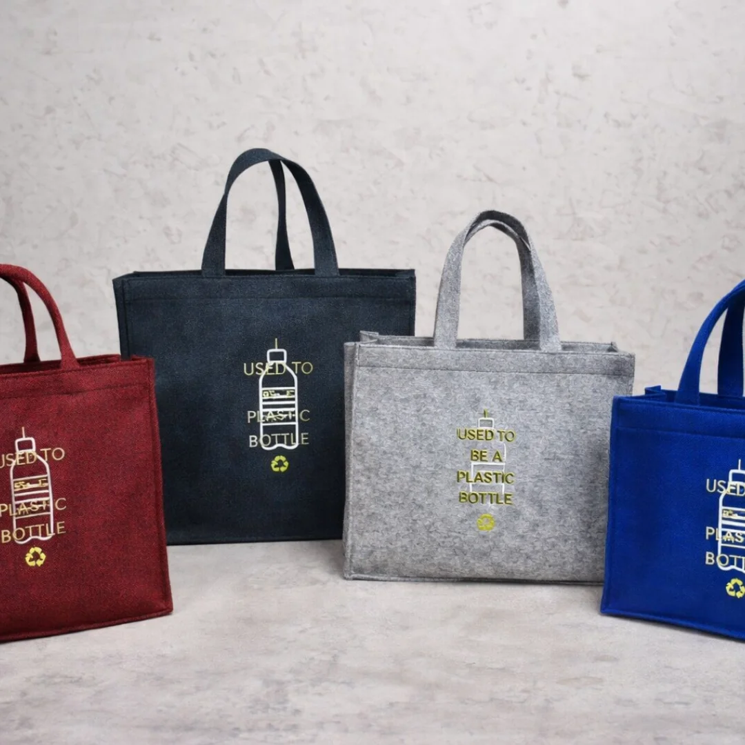 Filztragetaschen aus recyceltem PET verbinden eine hochwertige, moderne Optik mit echter Nachhaltigkeit. Das Filzmaterial wird aus recycelten PET-Flaschen hergestellt und unterstützt dadurch die Reduzierung von Kunststoffabfällen sowie den verantwortungsvollen Umgang mit Ressourcen.